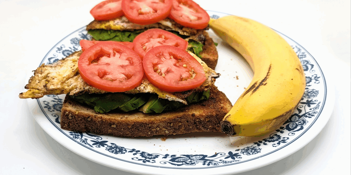 - Once the toast is done, spread just enough butter to lightly coat the surface of the bread, and place the avocado, tomato, and cooked egg on the toast in that order.