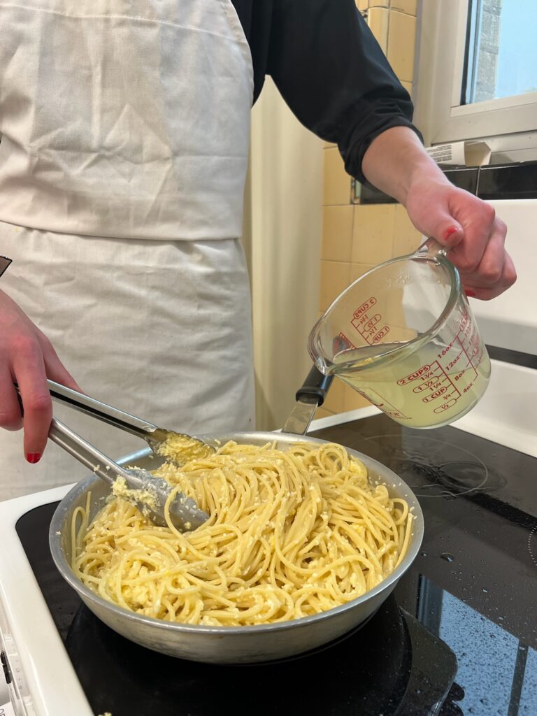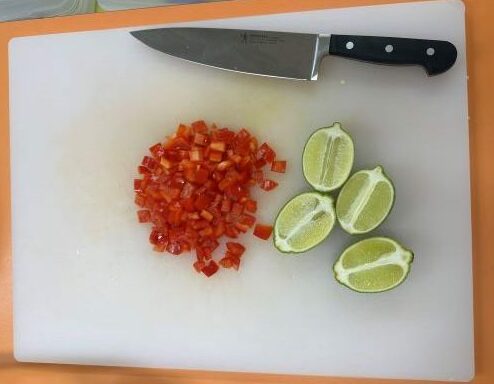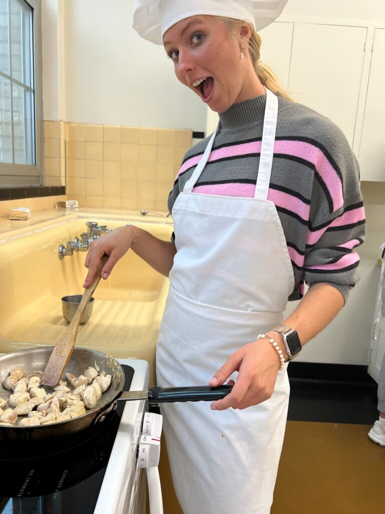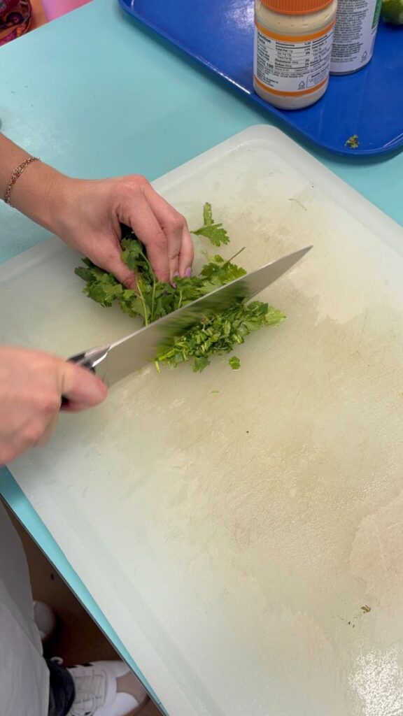Another key takeaway from this recipe was how much time we saved by prepping everything in advance. Practicing mise en place, chopping the veggies, measuring sauces, and slicing the chicken made the cooking process feel way less chaotic. It also gave us a chance to practice our knife skills and talk through proper techniques like proper hand placement and always using a sharp knife. These small habits can make a big difference in both efficiency and confidence in the kitchen, especially when you are short on time between classes or work shifts.