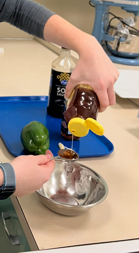We were intentional about keeping this recipe affordable and accessible for all college students. Instead of using specialty ingredients, we focused on items that are easy to find and already in most student kitchens. We also talked about how this stir-fry can be adapted throughout the year, depending on what’s available or on sale. For example, in the fall, mushrooms or cabbage work well. In spring, Snap peas or carrots are great options. Learning to swap ingredients based on seasonality and cost is a key part of building food literacy. It helps students cook with confidence and make the most of their grocery budget.