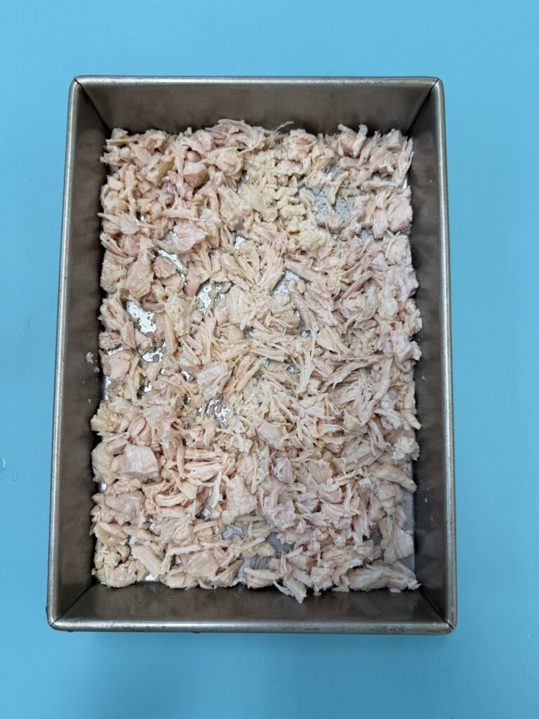1. Preheat oven to 400 degrees Fahrenheit. Add chicken to a greased 9×13 baking dish.