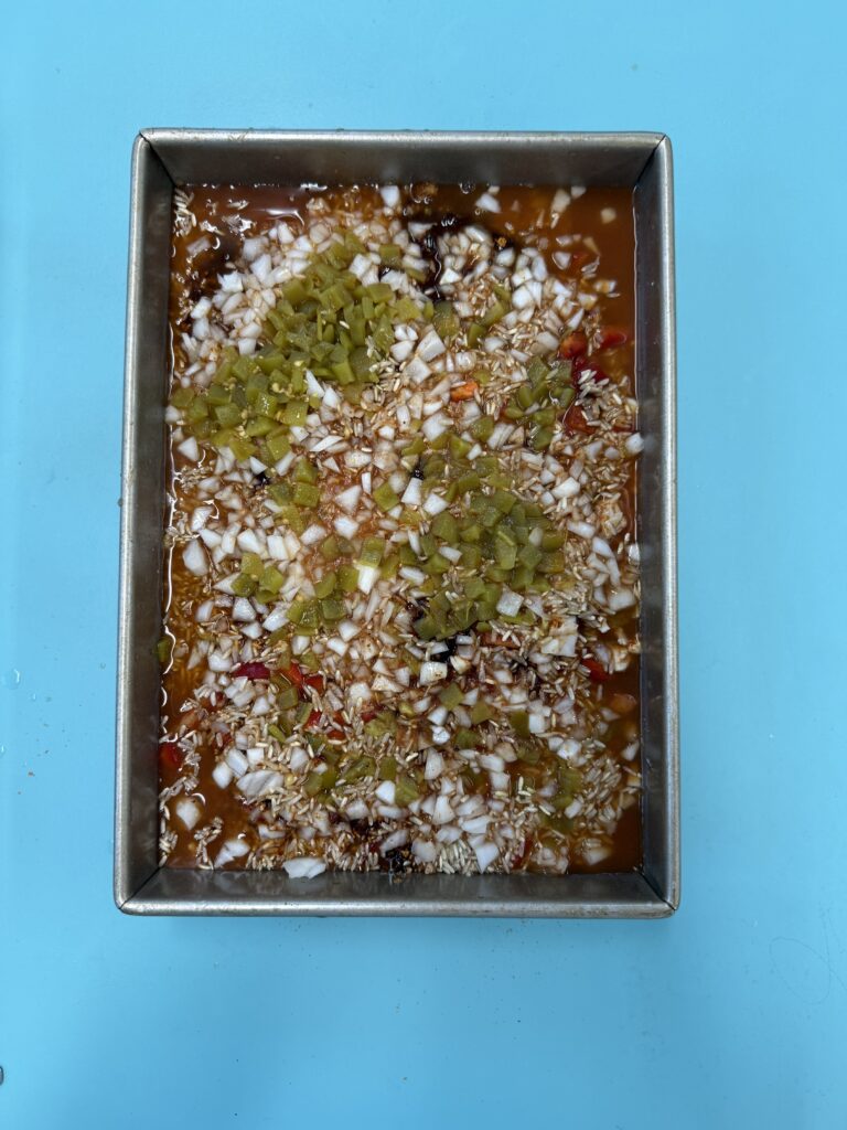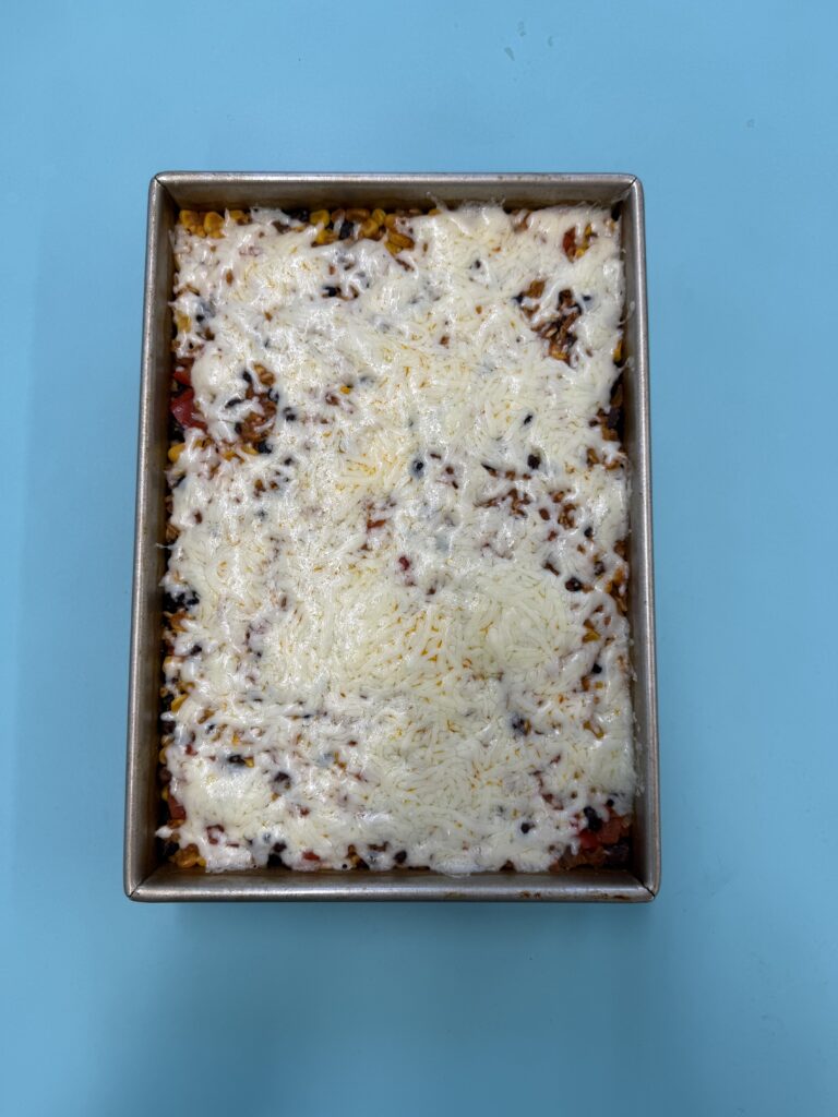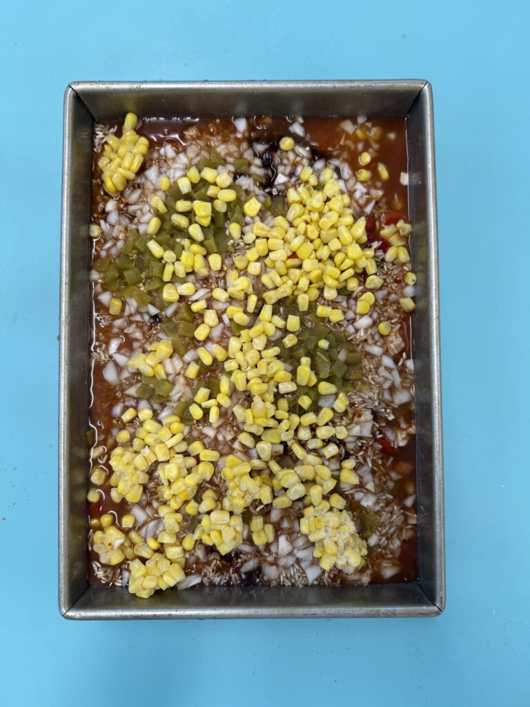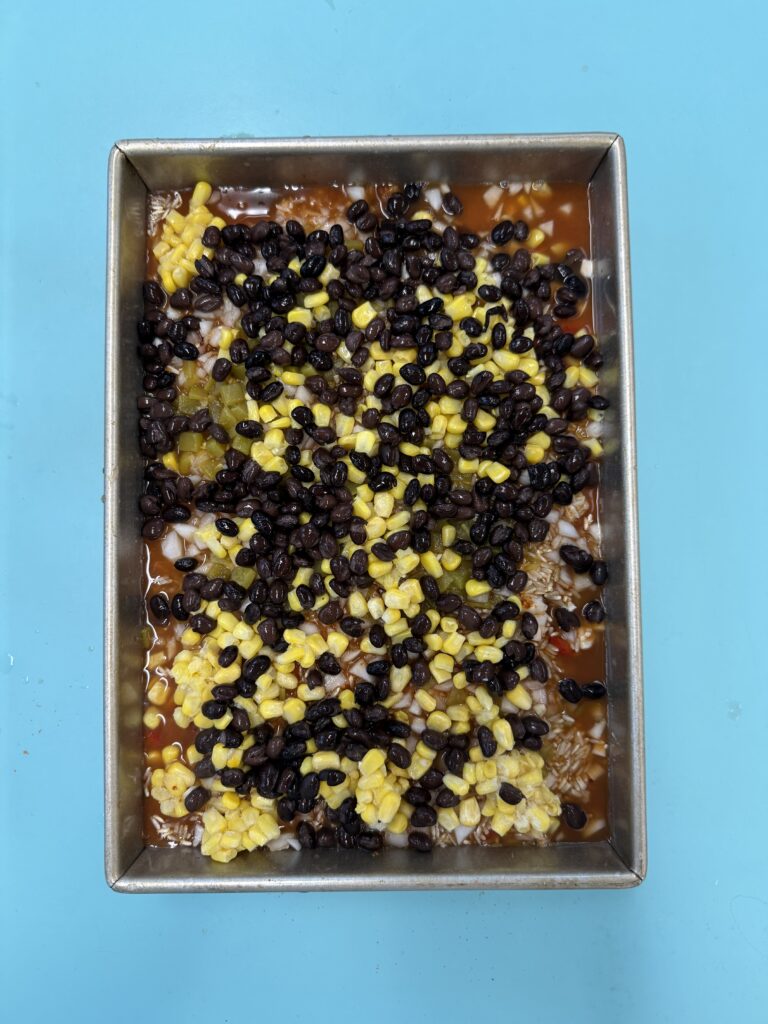 The slide show below shows each step as the burrito casserole is assembled for baking.