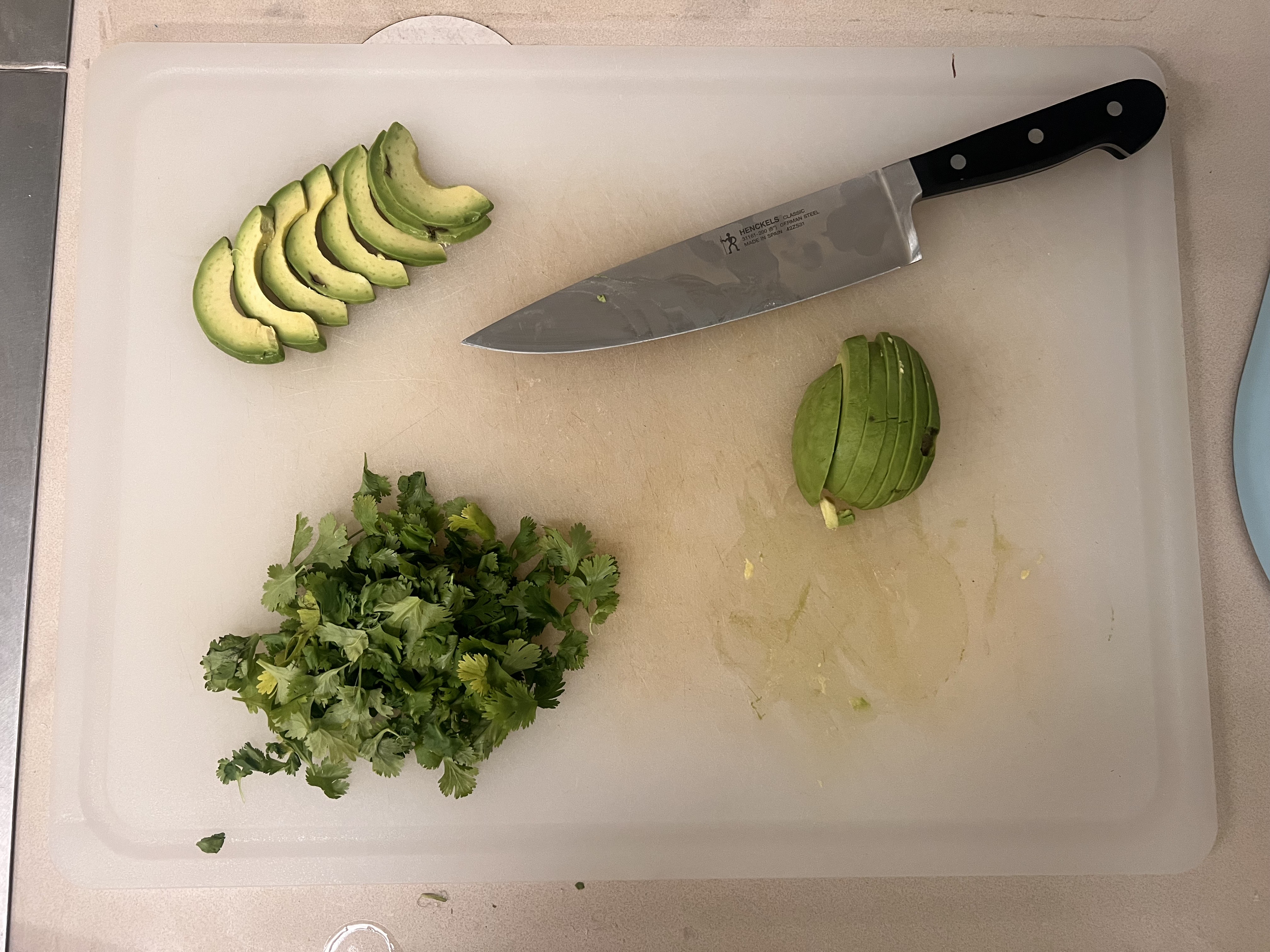 Before cooking, it helps to practice mise en place. Mise en place is a French culinary term that means “putting in place”. This just means that you do some preparation before you start cooking. In this recipe, you should set out all ingredients, slice the tomatoes and avocados, and then heat the pan. This should make the cooking process smoother and a lot less stressful. I recommend doing this before starting to cook with any recipe.