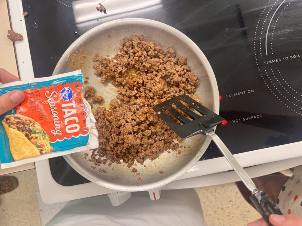 4. Sprinkle in the fajita seasoning and cayenne pepper.